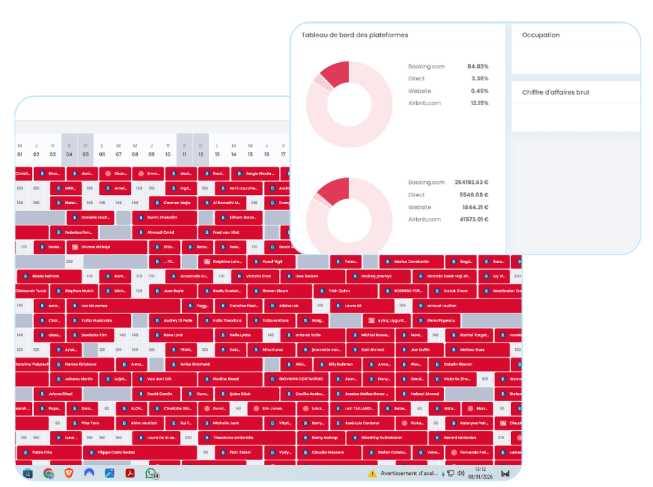 Nos étudiants obtiennent des résultats exceptionnels en maximisant leurs réservations Voici un aperçu des performances d'un de nos étudiants , qui a généré plus de 250 000 € en réservations Booking.com, représentant 84% de son chiffre d'affaires. Comparé à d'autres plateformes comme Airbnb, les résultats sont clairs.
